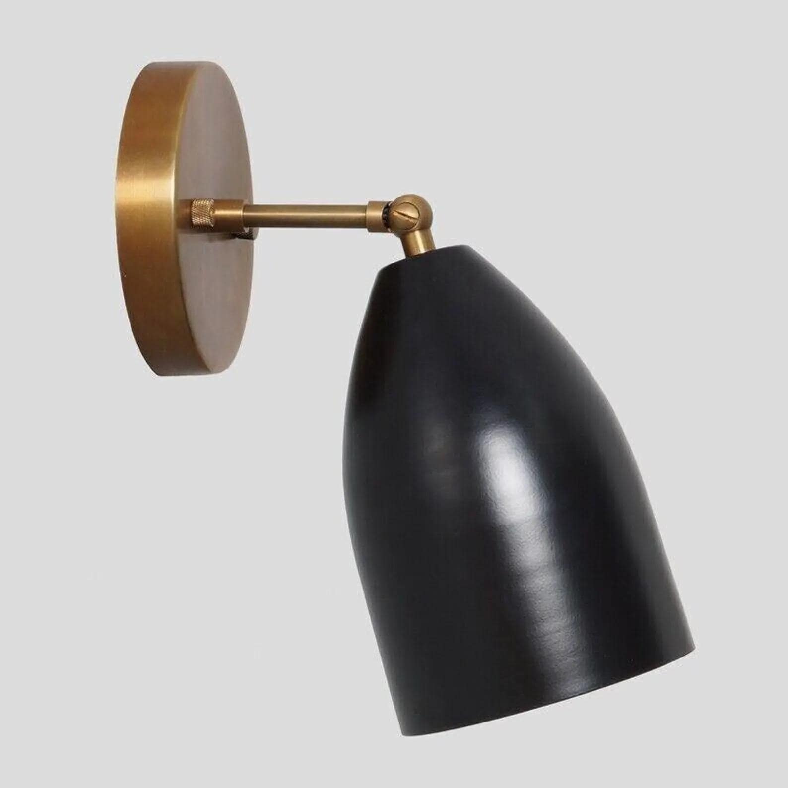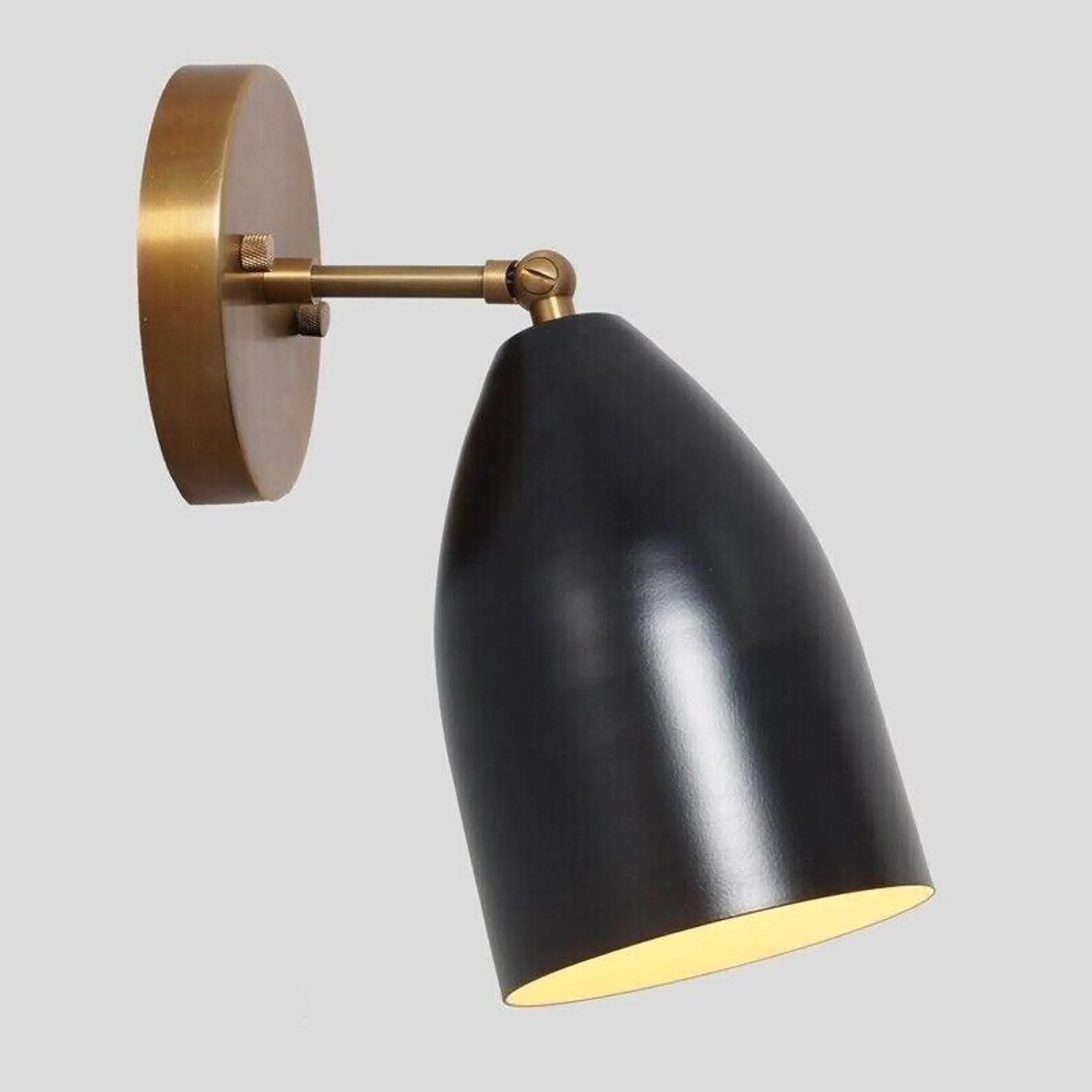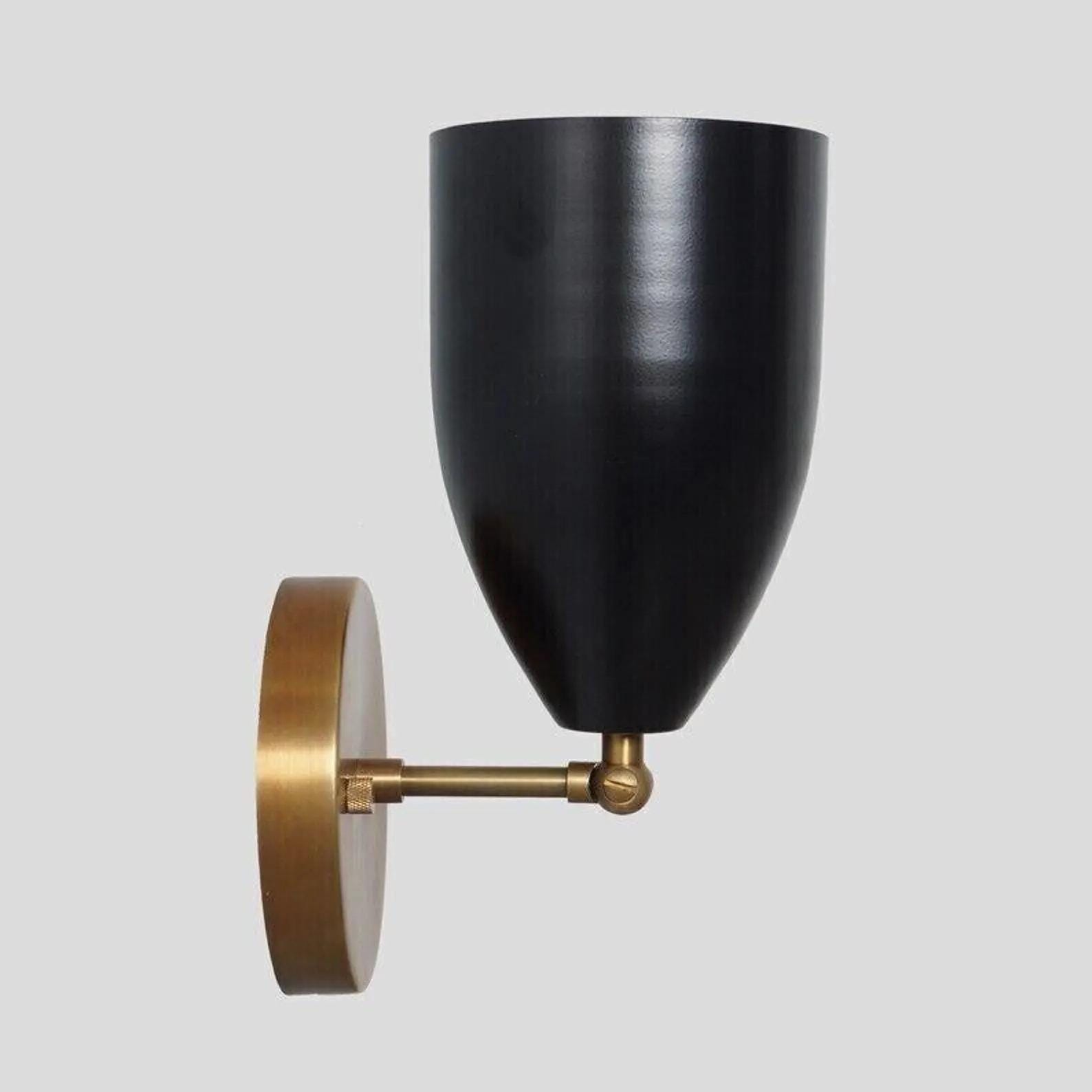 This wall sconce is incredibly stylish and architecturally inspired. The lampshades are adjustable and can light in different directions. Beautiful sculptural and decorative wall light style Stilnovo. Could be used as a bedside light. multiple brass finishes and shade colors are available.