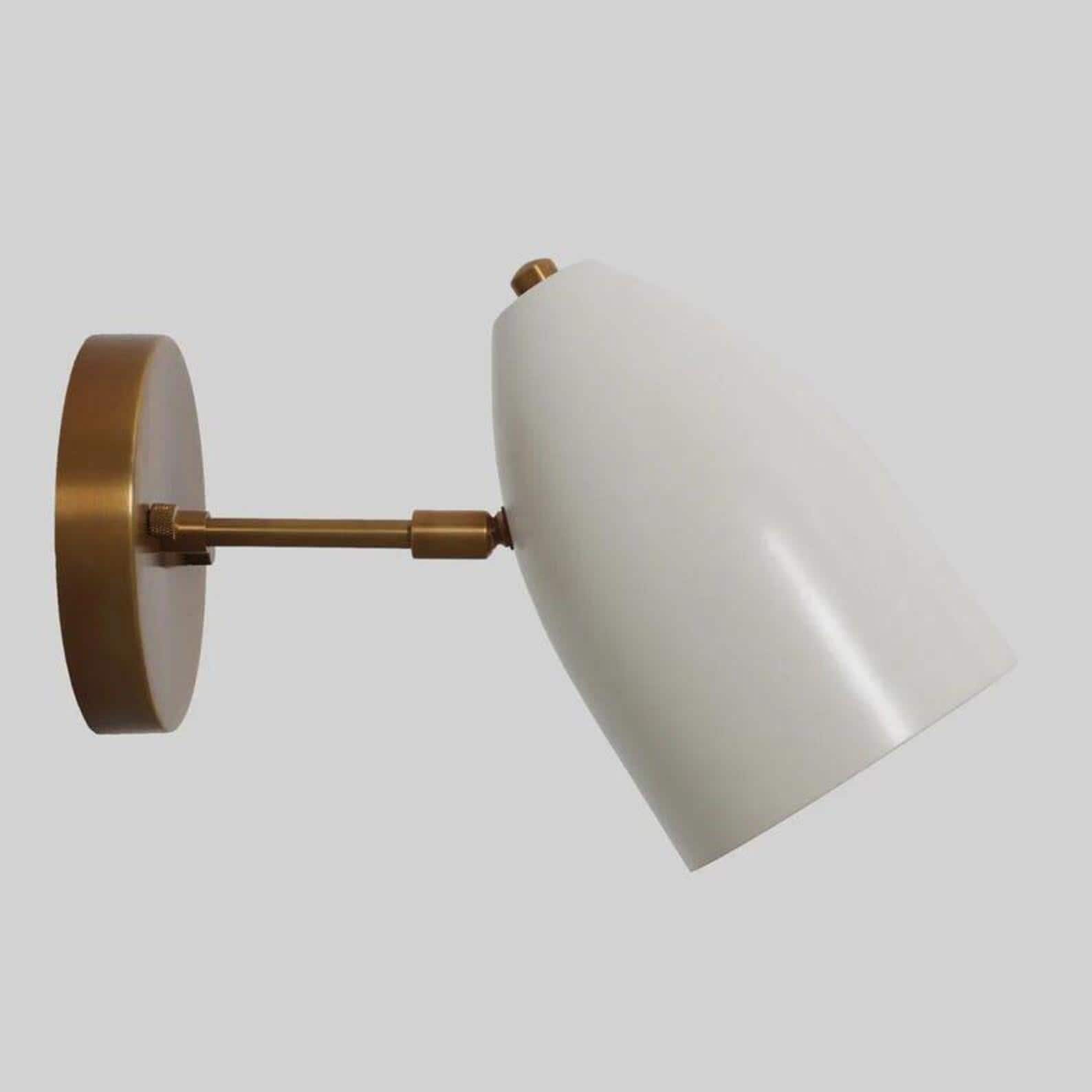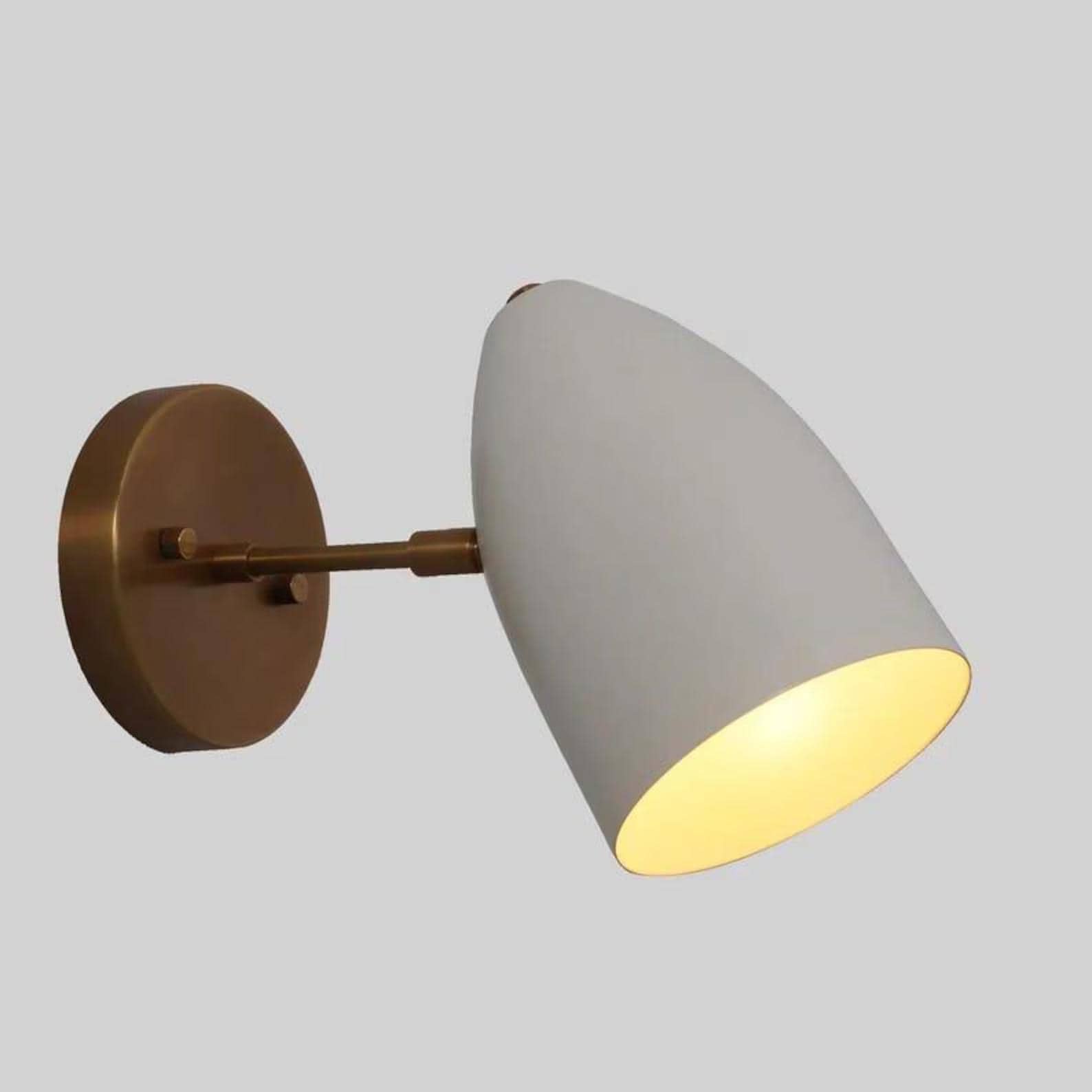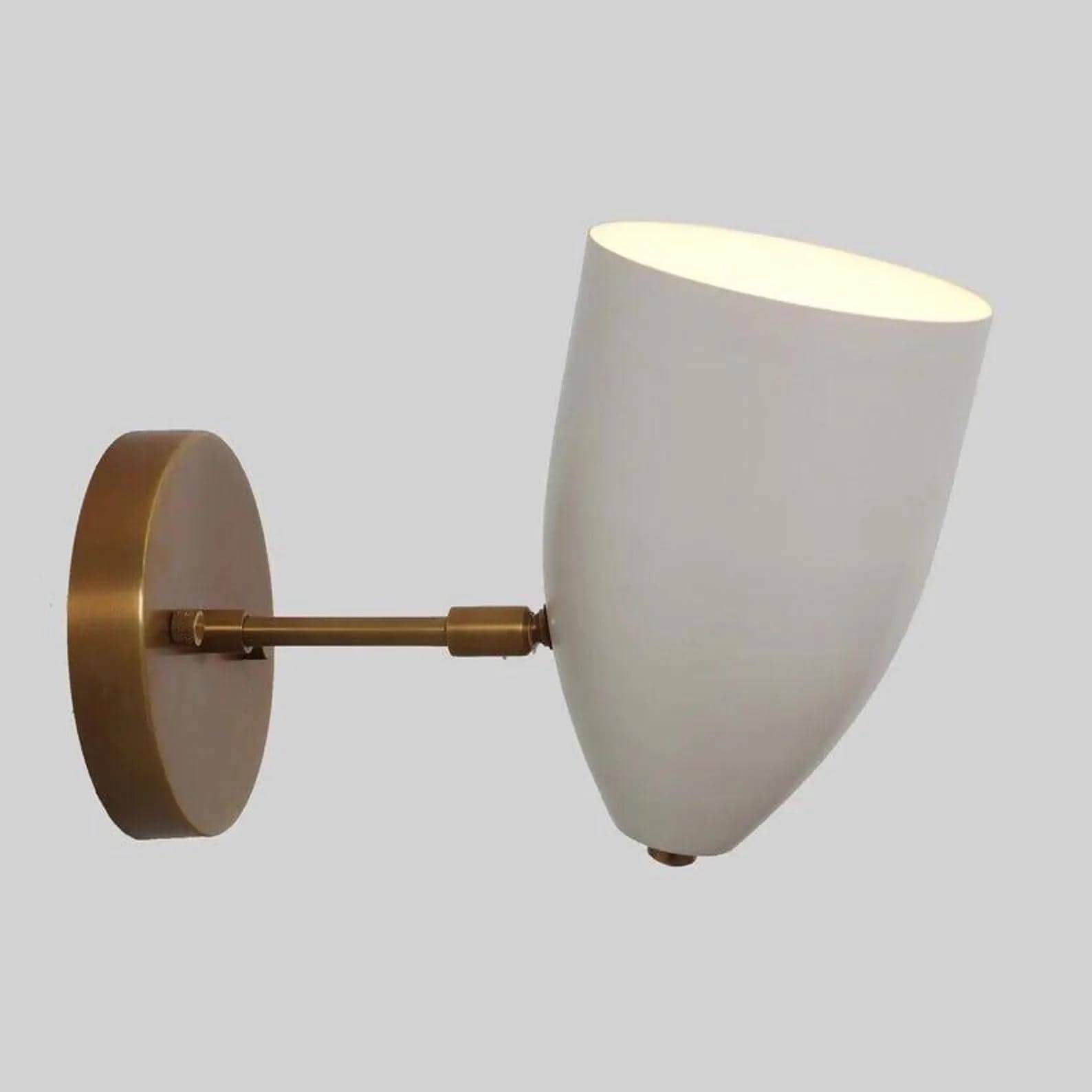 This wall sconce is incredibly stylish and architecturally inspired. The lampshades are adjustable and can light in different directions. Beautiful sculptural and decorative wall light style Stilnovo. Could be used as a bedside light. multiple brass finishes and shade colors are available.