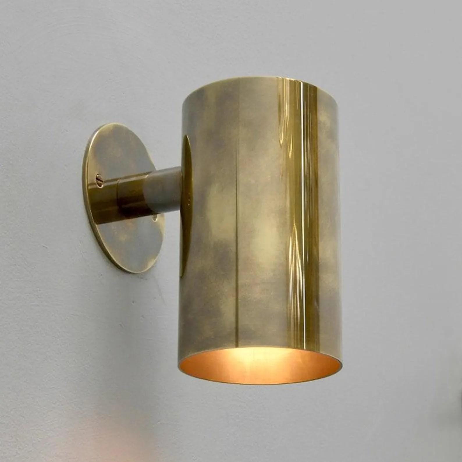This brass tube wall sconce is incredibly stylish and architecturally inspired. Beautiful sculptural and decorative wall light style Stilnovo. Could be used as a bedside light. multiple brass finishes and shade colors are available.