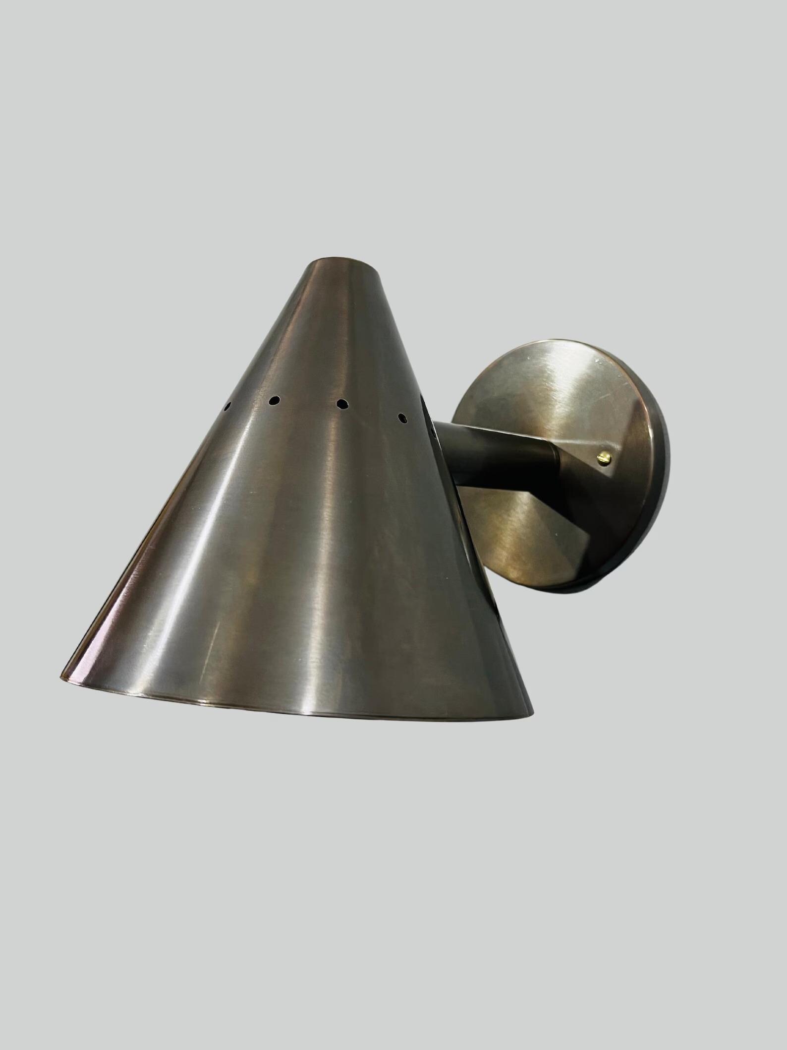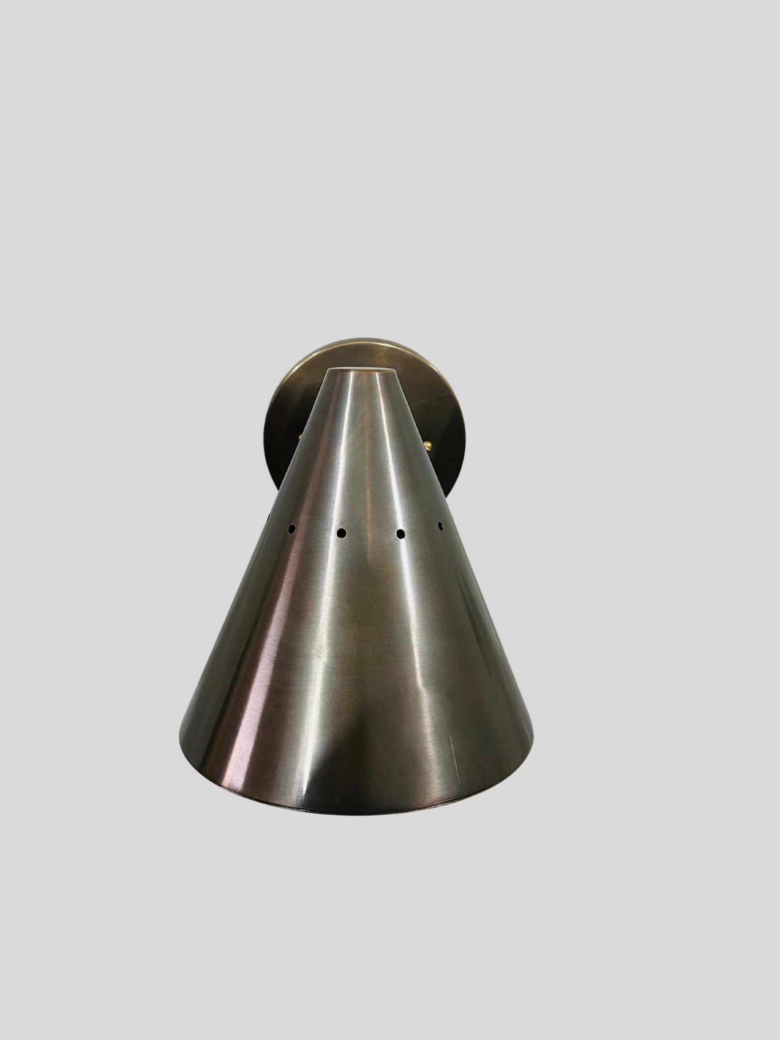 Add a modern feel to a room with this shades wall sconce. This stunning piece features a brass material cone shade 1 lights are giving ambiance light and shades for the direct light. Ideal over a kitchen counter. The brass shades can be also made in different finishes. please choose Finish form the image attached.