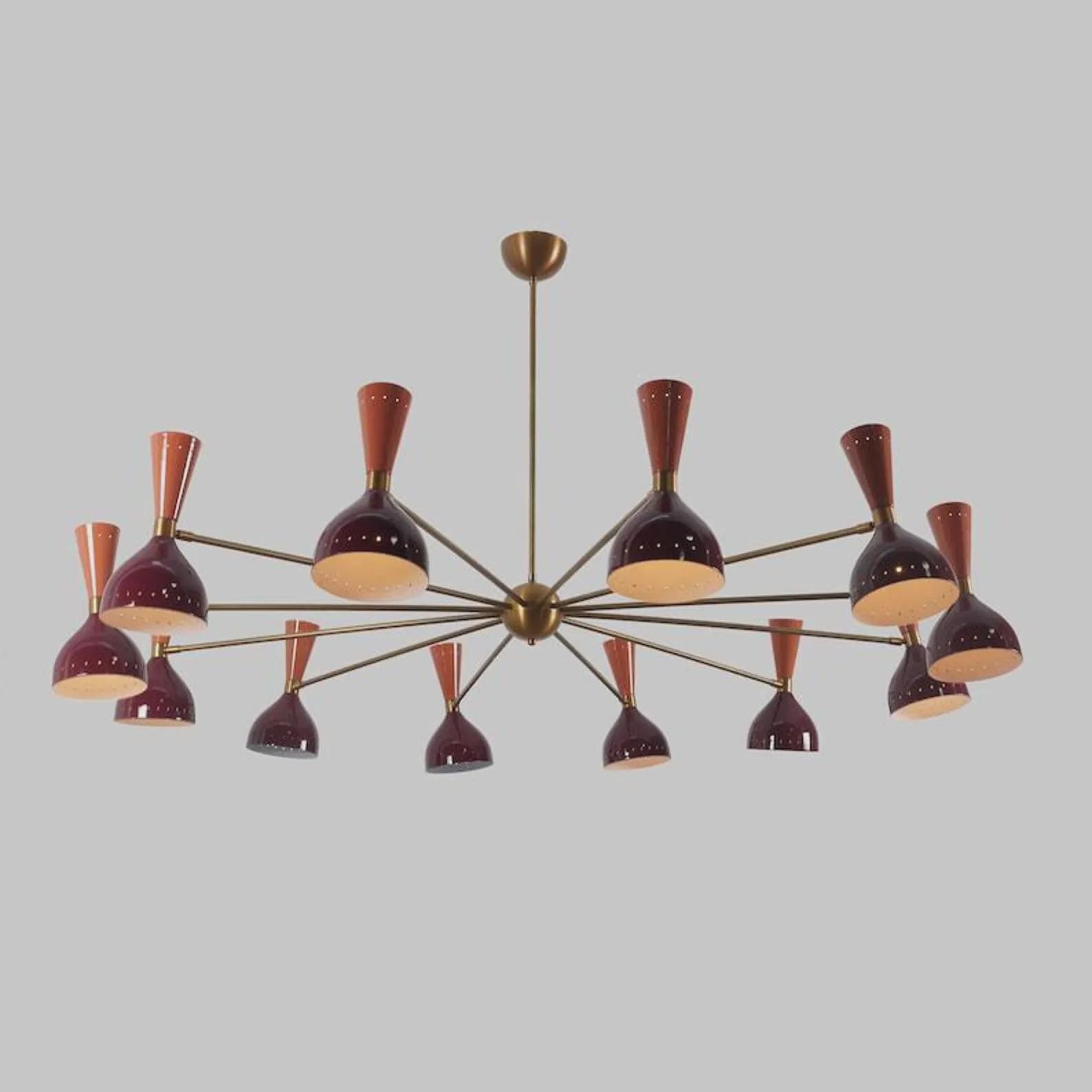 Twelve Arm 24 Lights Brass Sputnik Chandelier construction with pure brass and metal shade comes with custom color choice. Each shade has both size light sockets to spread the brightness in all direction. brass frame is available in selection of brass finishes. size customization is also available so please contact us if you need any customization.