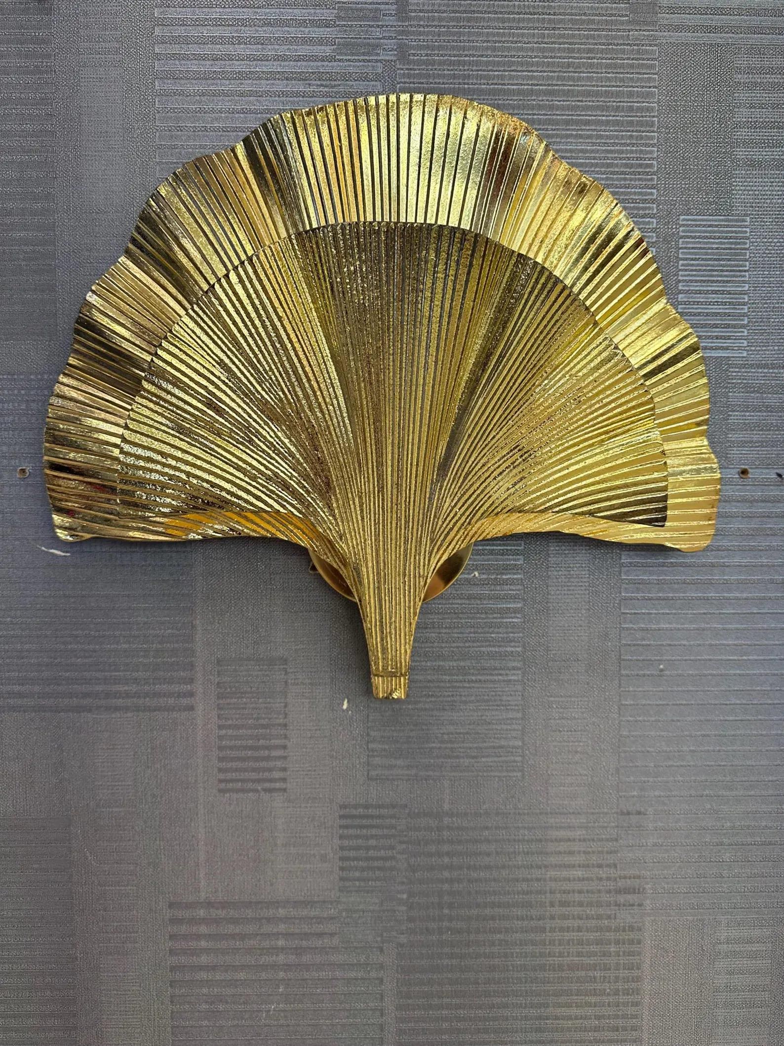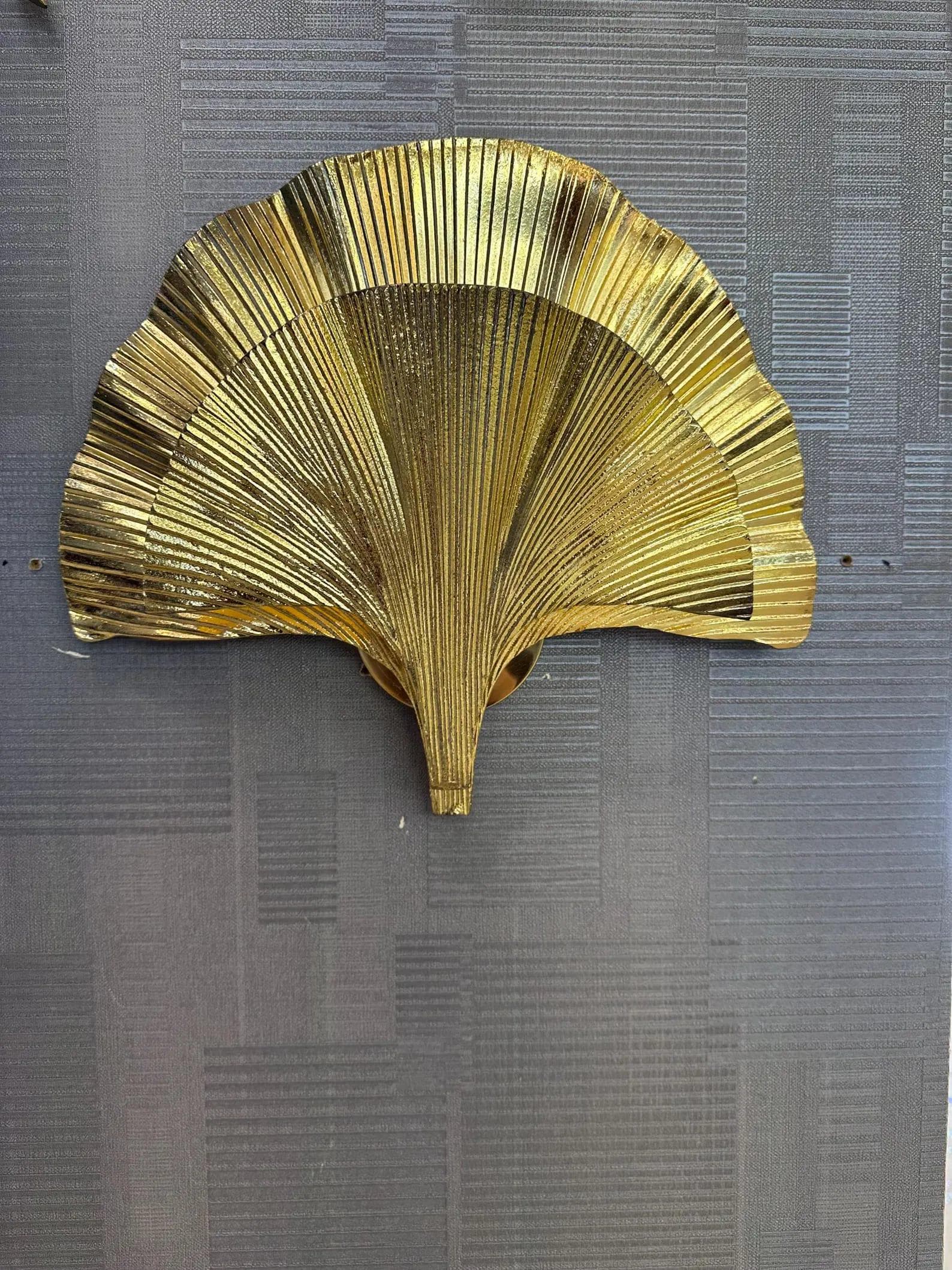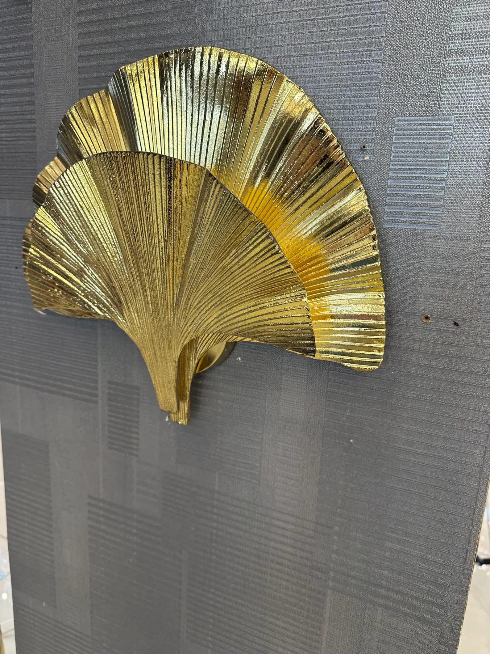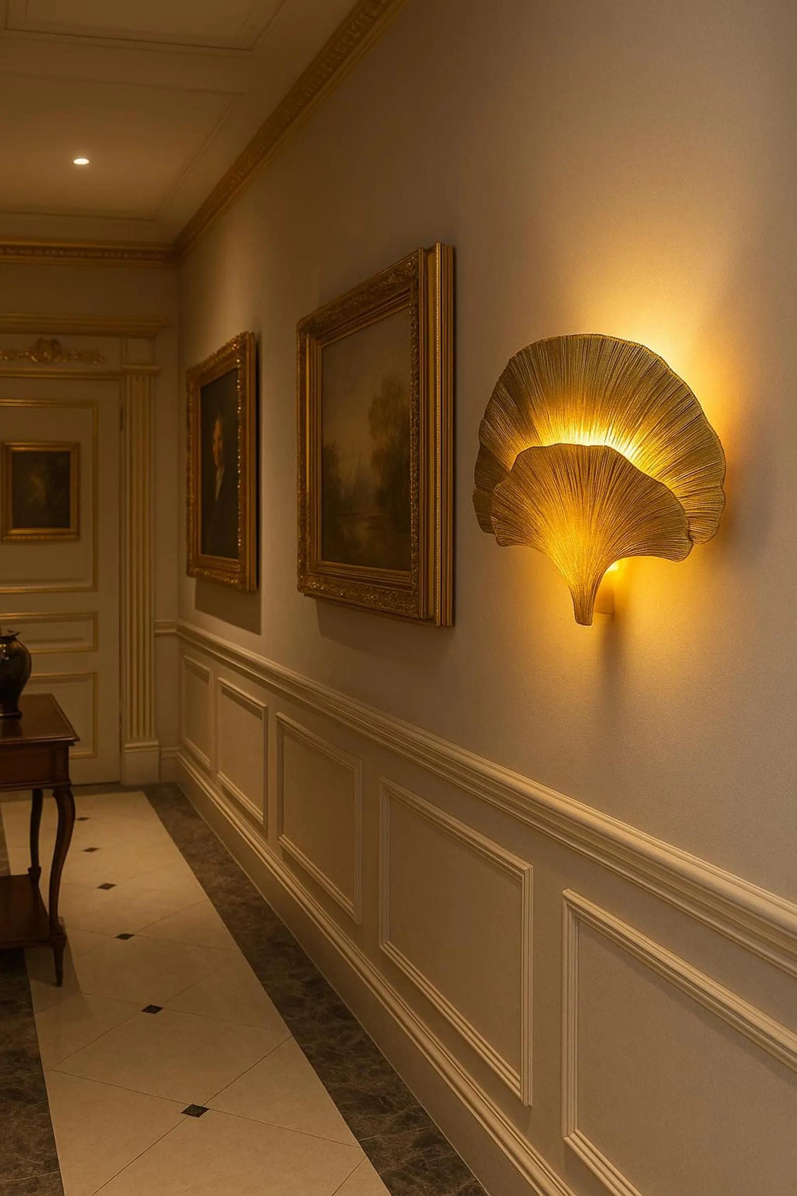 Bring a touch of luxury and elegance to your home with this handmade gold ginkgo leaf wall sconce. Inspired by the beauty of nature, this wall light features a stunning ginkgo leaf design in a shiny gold finish, making it the perfect statement piece for modern and art deco interiors. Each piece is carefully handcrafted, ensuring uniqueness and artisanal quality. Its sculptural form adds depth, texture, and a warm glow to your living room, bedroom, hallway, or dining space.
