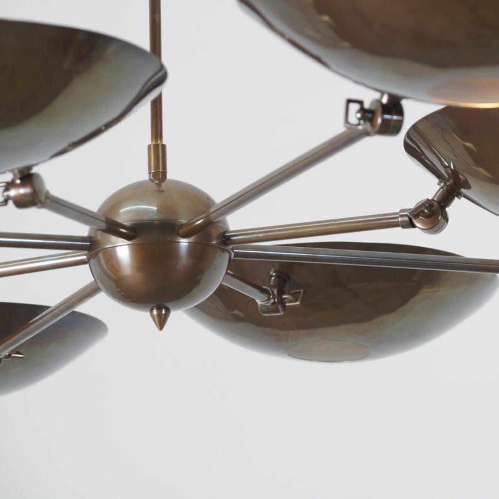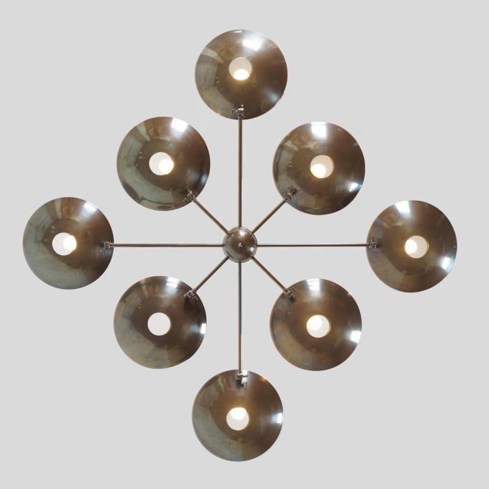 Eight Arm Light Brass Shade Lights Stilnovo Style Shade Sputnik Chandelier Light Fixture. chandelier features a brass Frame with shades in classic modern shapes. brass frame is available in selection of brass finishes. size customization is also available so please contact us if you need any customization.
