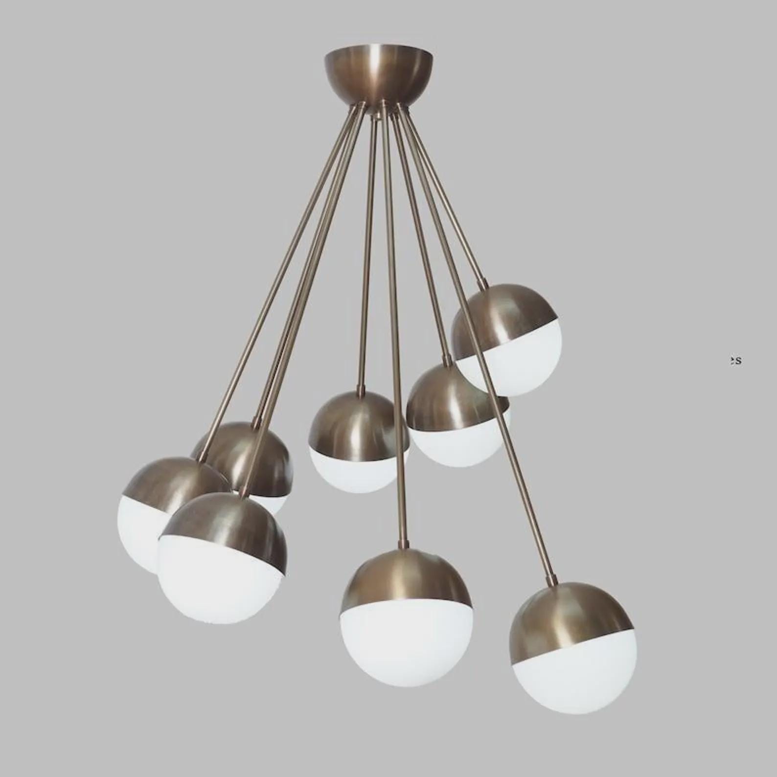 Beautiful modern brass Eight globe sputnik Cluster chandelier features brass frame and milky white glass globes. this sputnik chandelier comes in selection of brass finishes. size customization is also available so please contact us if you need any customization.