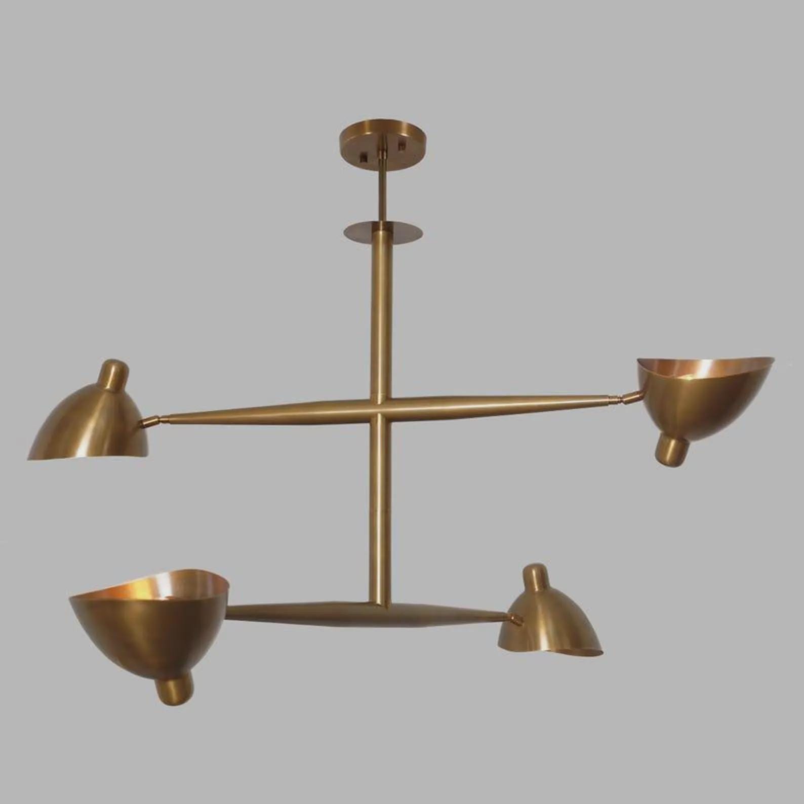 Four arms Lights Metal Shade sputnik Chandelier. The Frame And the Shades are made with pure brass material. brass frame is available in selection of brass finishes. please contact us if you need any customization.