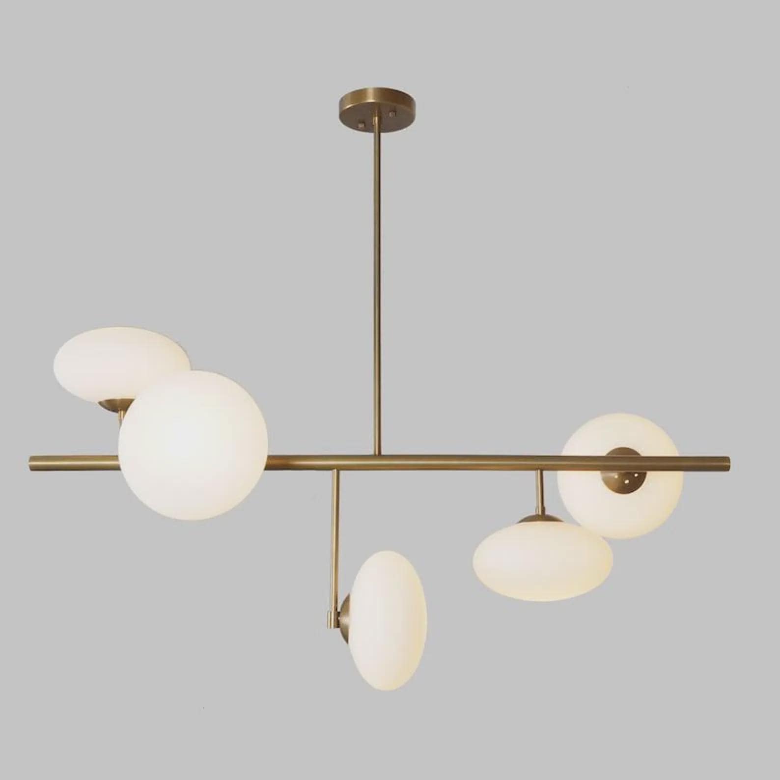 This Five Globe light stilnovo style brass sputnik starburst linear chandelier is incredibly stylish and architecturally inspired. this sputnik chandelier comes in selection of brass finishes. size customization is also available so please contact us if you need any customization.
