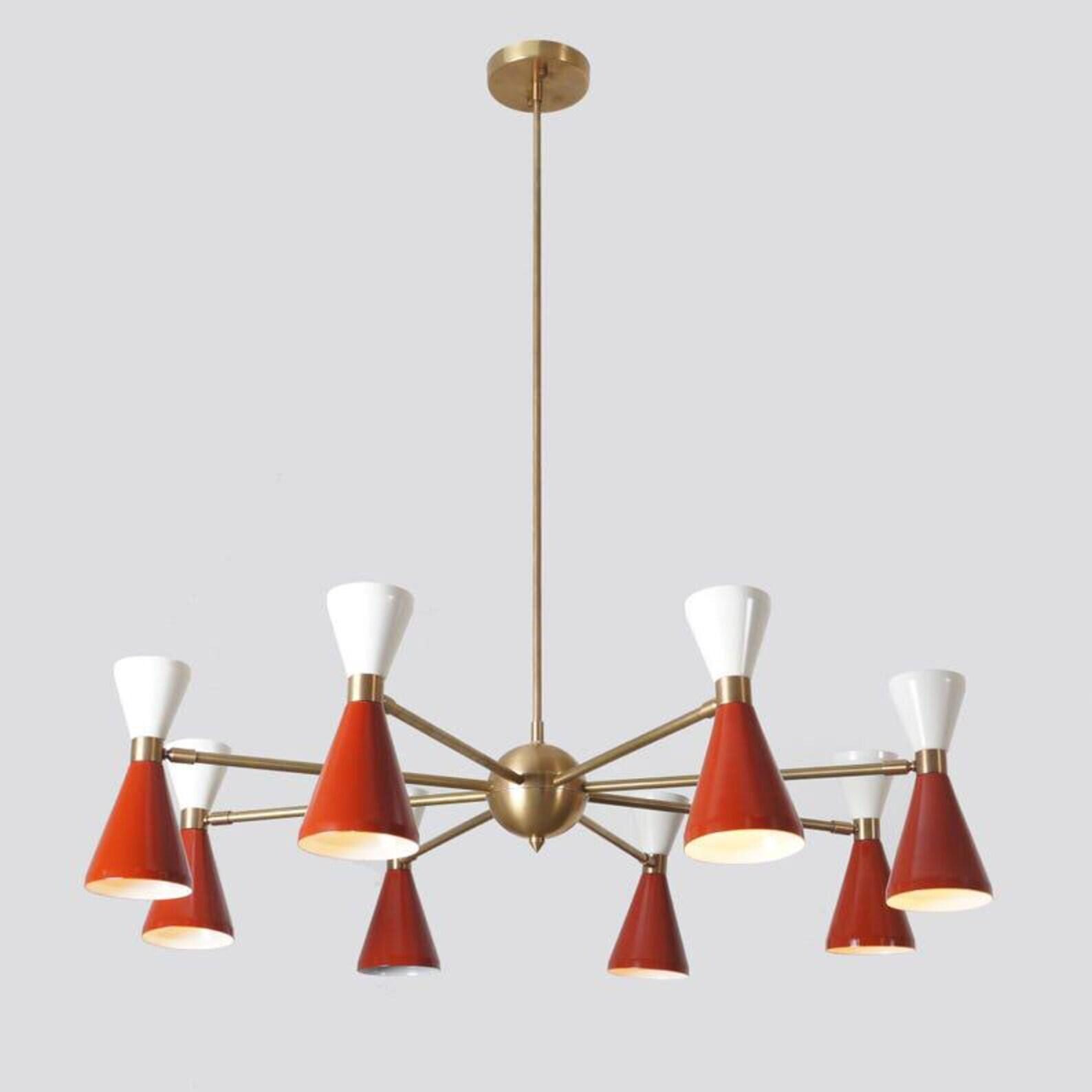 Eight Arm Sixteen Lights Brass Sputnik Chandelier construction with pure brass and metal shade comes with custom color choice. Each shade has both size light sockets to spread the brightness in all direction. brass frame is available in selection of brass finishes. size customization is also available so please contact us if you need any customization.