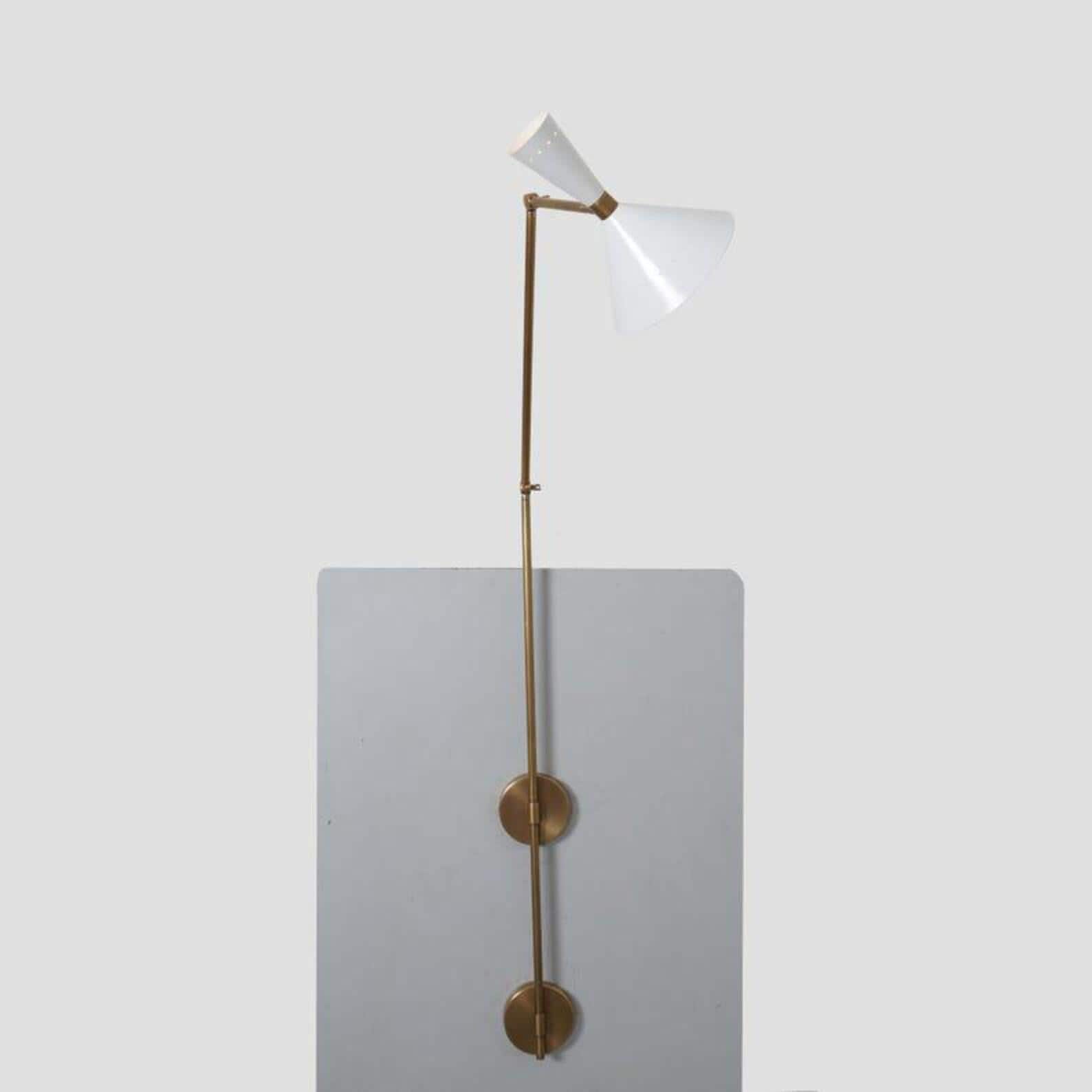 Beautiful modern brass Double Light Shade articulated wall lamp. Expertly made by a specialized workshop, every aspect of this lamp is meticulously crafted to match the hard-to-find lamps from the 1950s. shade has both side bulb socket to spread the light in both direction. its versatile nature makes it perfect for placement on the side of a fireplace, giving light to a console island, or illuminating a reading sofa. Customization is also available so please contact us if you need any customization.