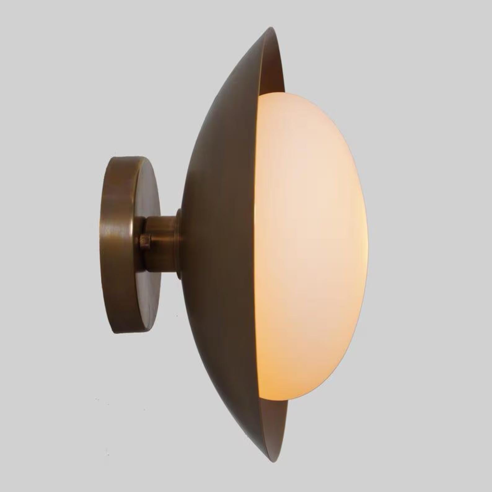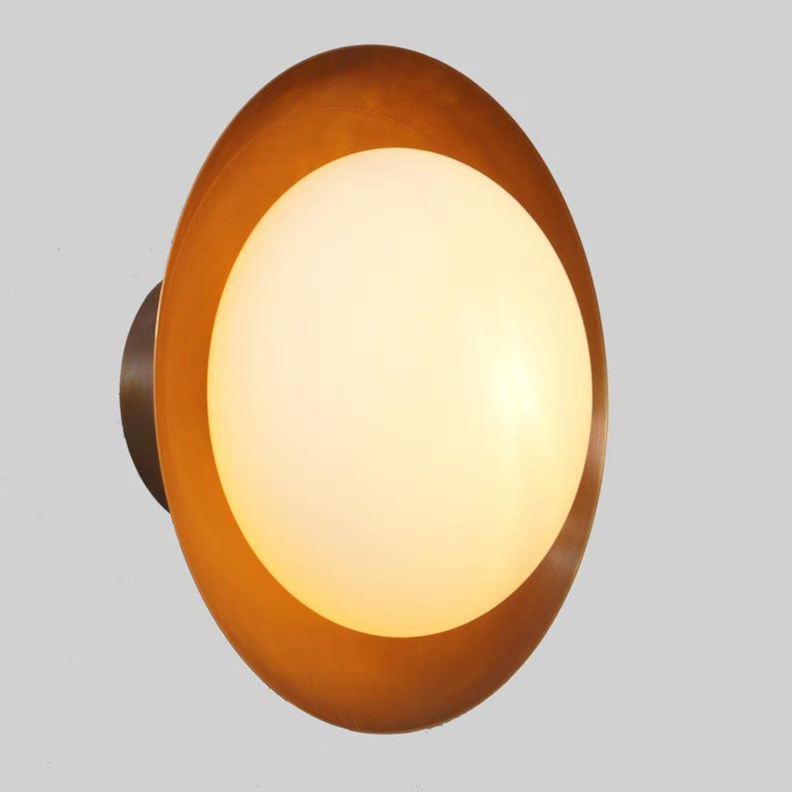 Beautiful modern brass Sigle Light Glass Globe wall lamp. this wall sconce can be used as a flush mount. Expertly made by a specialized workshop, every aspect of this lamp is meticulously crafted to match the hard-to-find lamps from the 1950s. its versatile nature makes it perfect for placement on the side of a fireplace, giving light to a console island, or illuminating a reading sofa. Customization is also available so please contact us if you need any customization.